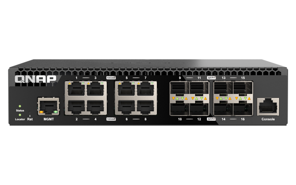 輕巧型交換器,可在 1U 機櫃放置兩台 QSW-M3216R-8S8T,或搭配其他 QNAP 半機架式交換器,空間利用效率高。