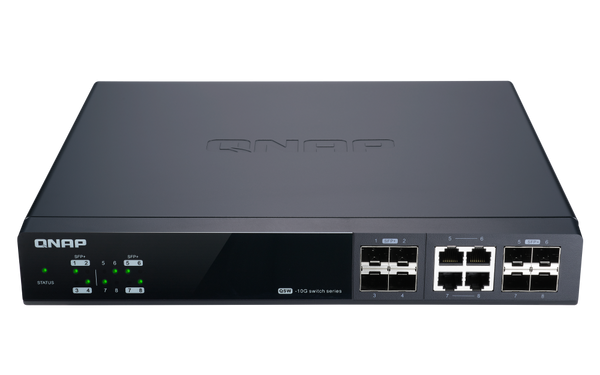 具備 4 個 10GbE SFP+ / RJ45 複合埠,相容 Multi-Gigabit NBASE-T 標準,可支援達五速 (10G / 5G / 2.5G / 1G / 100M) 網路,使用原有線材即可升級網速。